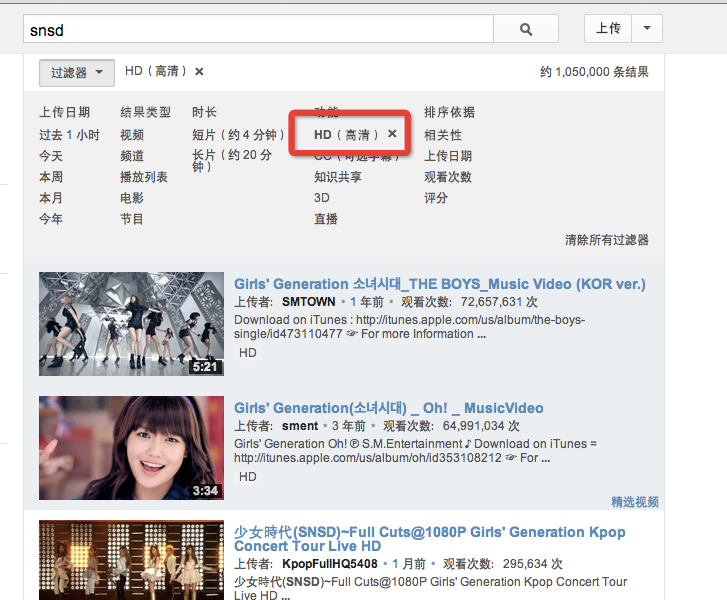 1.搜索,然后筛选”高清“,如下图: