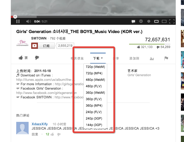 国外的视频网站和国内的不一样,一般来说他们有得非常严格的版权,但由于现在是互联网世界了,很多歌手也把网络作为自己一个重要的宣传渠道,他们官方也会上传一些高清的视频,如笔者喜欢的"少女时代“,但只允许在线观看,不让下载播放,而且Google也不让youtube有下载功能,包括所有能下载youtube视频的chrome插件也不能在google的商店里提供,所以我们需要到第三方网站去下载这个插件,http://youtubedownloader.anoniamto.com/ 下载安装后,好像啥图标也没有出现,是的,只有在你访问youtube.com的时候才会出现插件的身影。