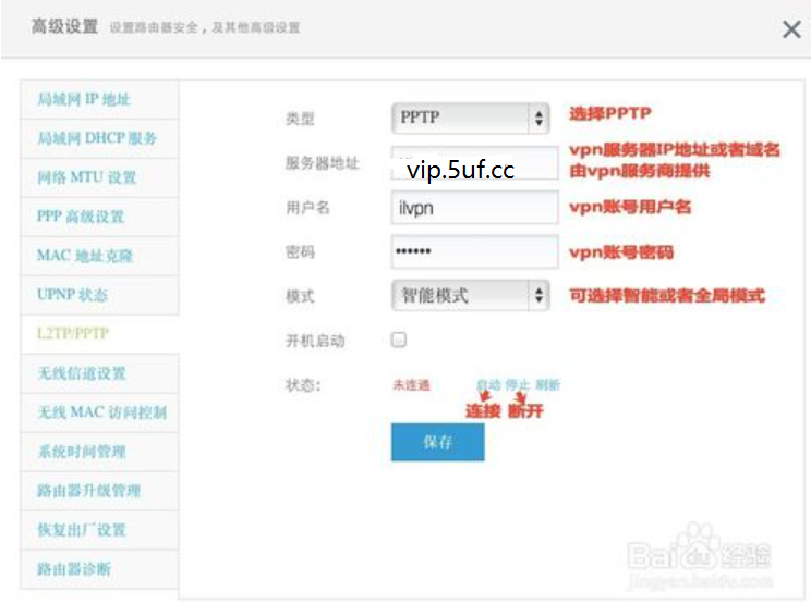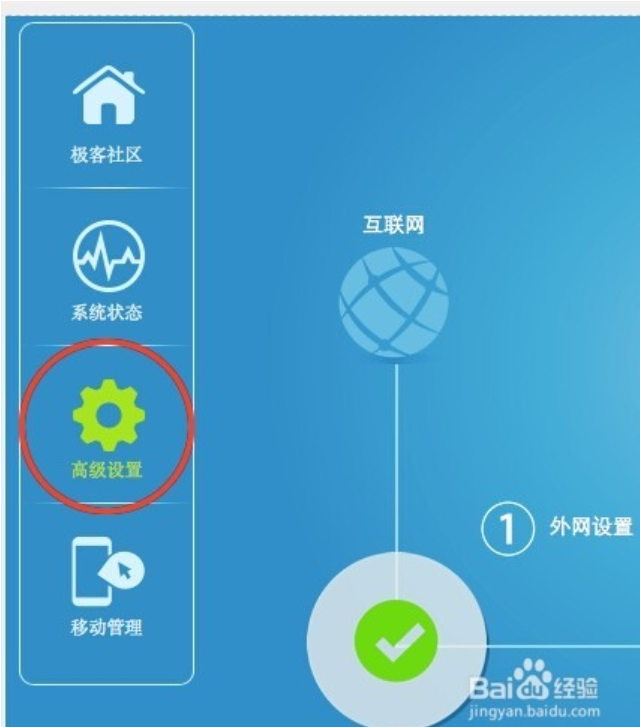 进入后台后点击高级设置,进入管理菜单,点击PPTP选项。