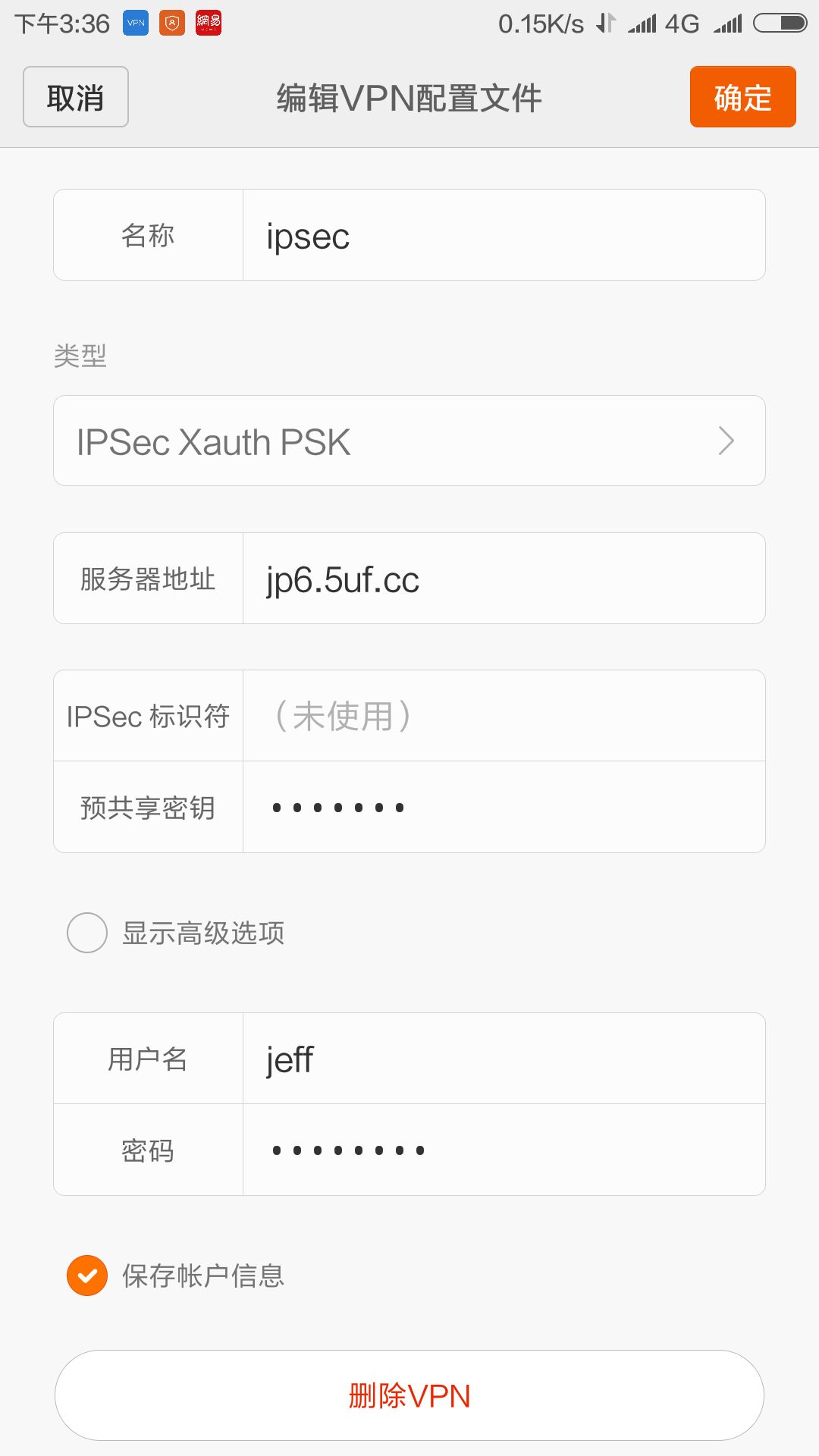 以小米的miUI为类,如下图,预共享密钥填写:5uf.net