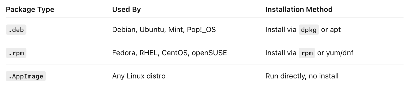 On the website, choose Linux as your platform. Review the available package formats — .deb, .rpm, .appimage — and select the one compatible with your Linux distribution and preference. Then, download the package matching your system architecture (amd64 or arm64).